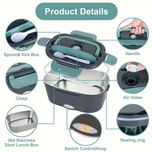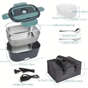 Electric Lunch Box Faster Food Warmer, 60.87oz Larger Self Heating,12V 24V 110V Portable Food Heater for Car Truck Work,Leakproof Removable Container with Cutlery for Adults – PRISM+